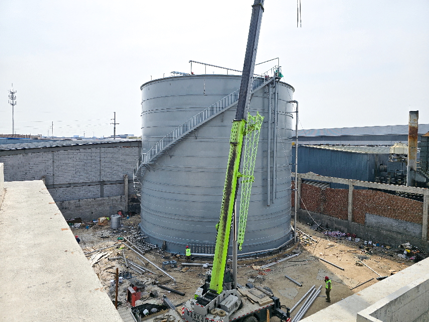 我司于2025年2月13日進(jìn)駐現(xiàn)場(chǎng)開展施工工作,截至2025年3月31日,我司已順利完成了厭氧罐體的安裝作業(yè),進(jìn)入到厭氧罐工藝的安裝階段,并同步開展集中式污水處理廠的施工工作。